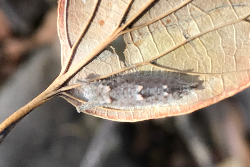 どんな姿をしているの?ということで、ゴマダラチョウの冬の写真を見せていただきました。